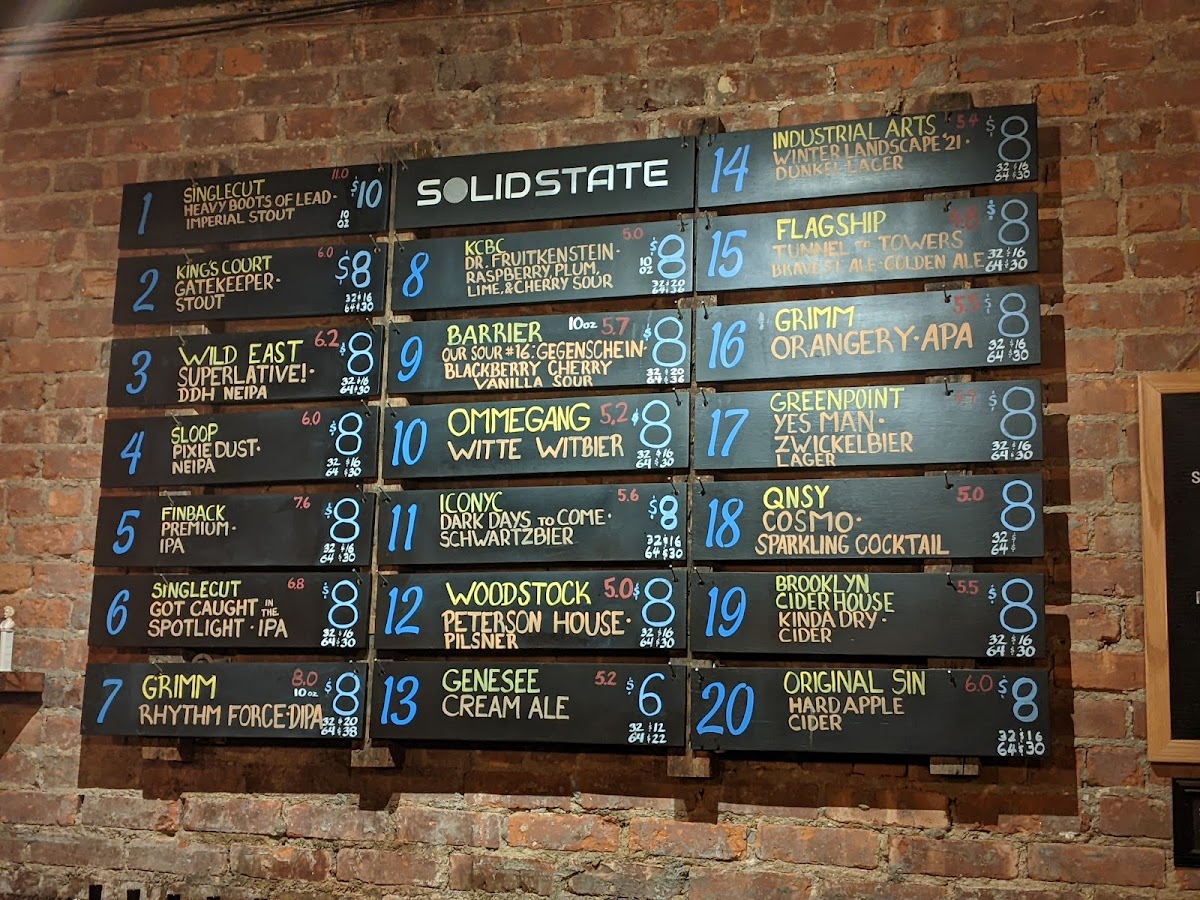 “ This is one of my favorite bars for a great craft beer selection, board games, trivia nights, and pinball. They have 8 pinball machines in the back - with new ones occasionally added into the rotation - as of 12/24/21, the ones I played were Indiana Jones, Tron, Deadpool, and Guardians of the Galaxy. All games only take cash and usually have 3 credits for 2. They also have a ton of board games and card games to grab and play at the tables. Local craft beer selection is top notch (they have both drafts and bottles also on rotation) and they also can make cocktails if that’s your preference. If you want food, you can either order delivery on your own to the bar or just pick up food around the area and eat it at the bar. If you’re in the area looking for a fun place to hang out with friends, I highly recommend checking out Solid State. ”